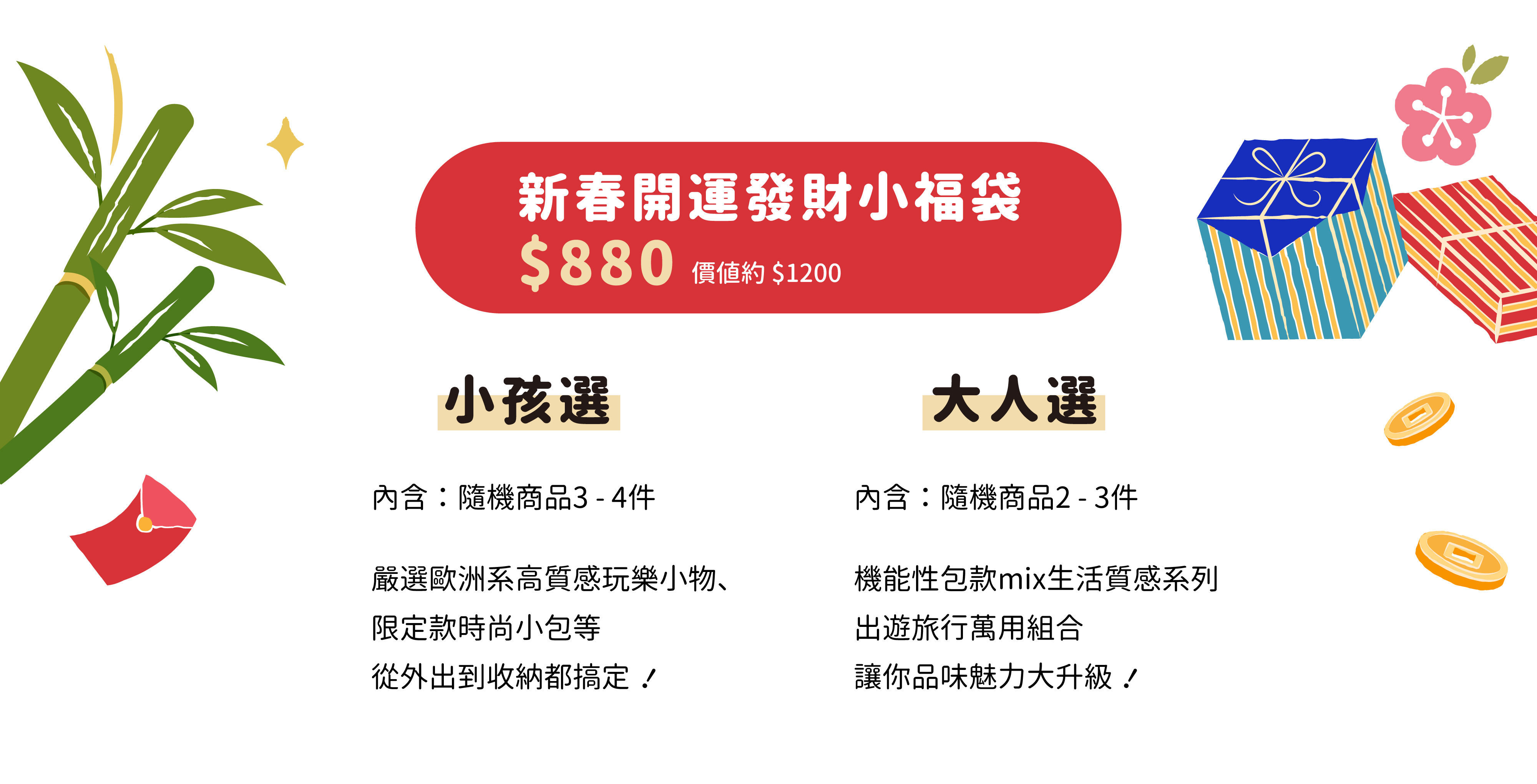 為大人小孩量身打造的限量四款福袋,數量有限售完為止 .ᐟ