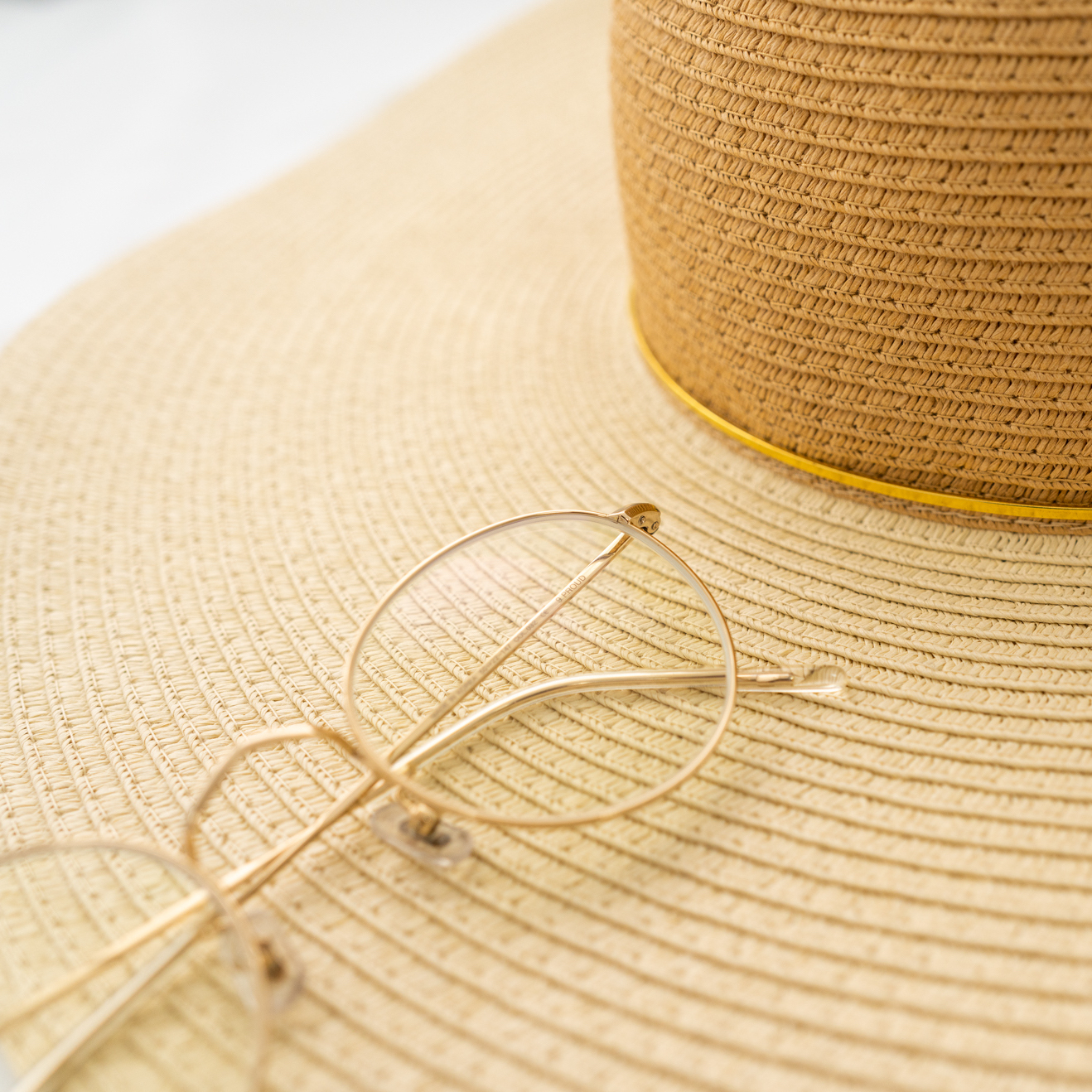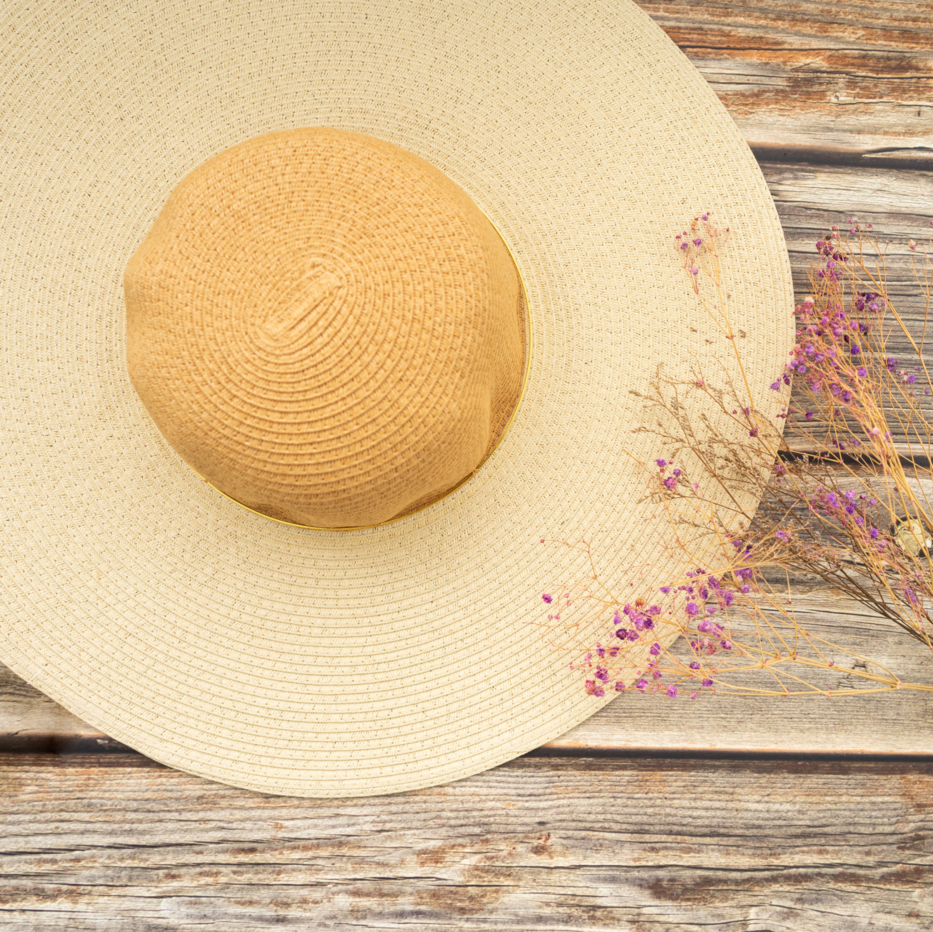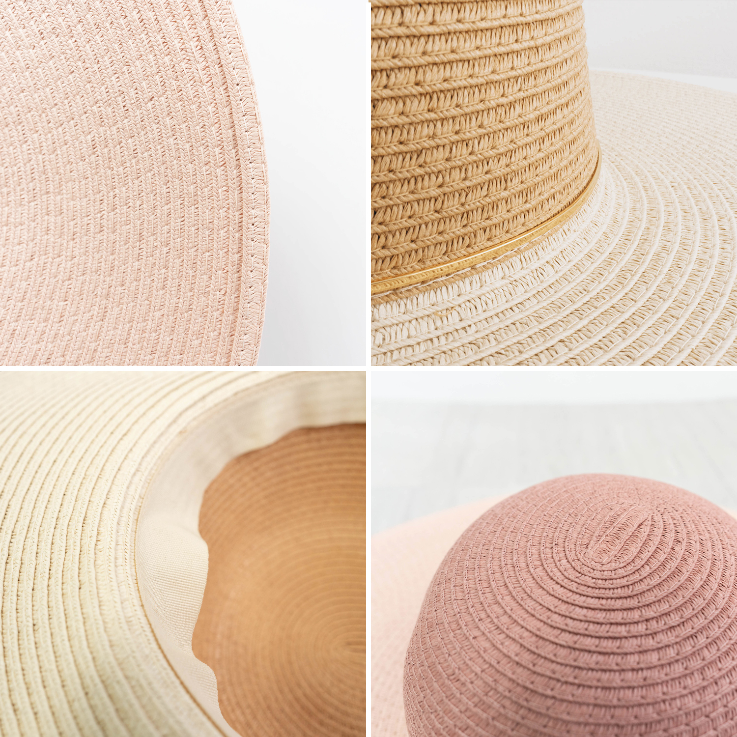 【米色金圈遮陽草帽Colorblock Paperbraid & Gold Ring Trim】