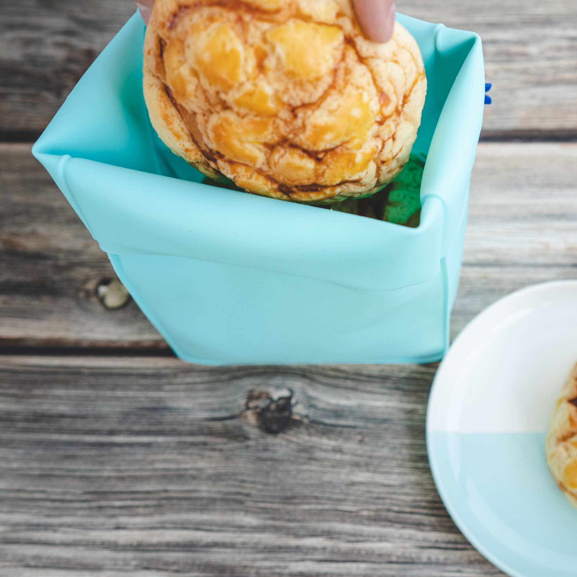 食品級矽膠,用來裝熱食也很OK,袋口能旋轉束緊的綁繩,收納起來更衛生