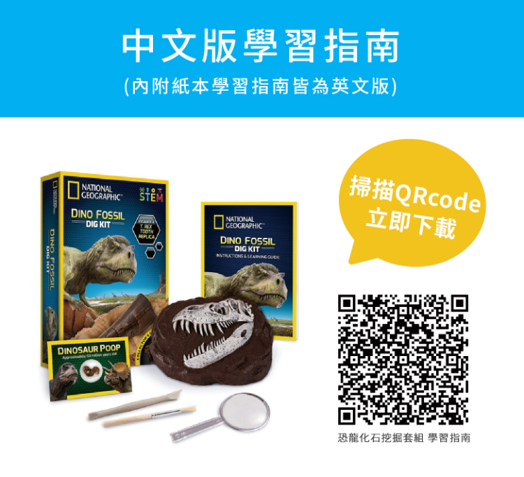 讓孩子像生物學家一樣,從恐龍化石挖掘出真正的暴龍牙齒化石複製品,並了解恐龍生態、成為化石的知識。