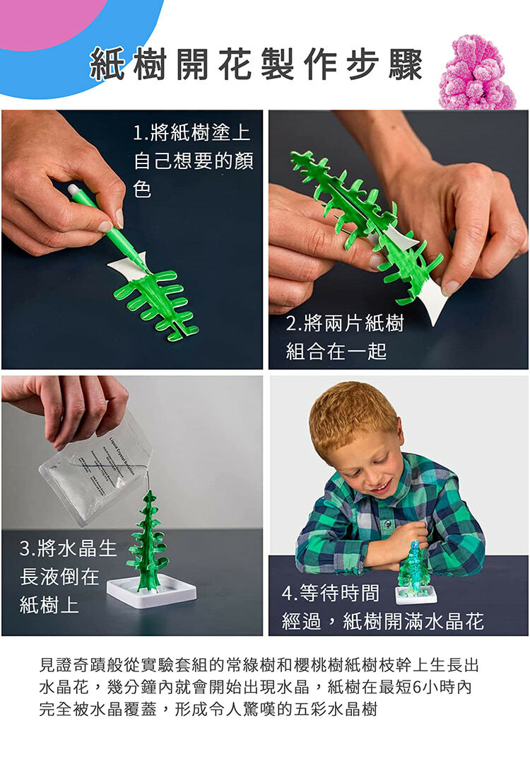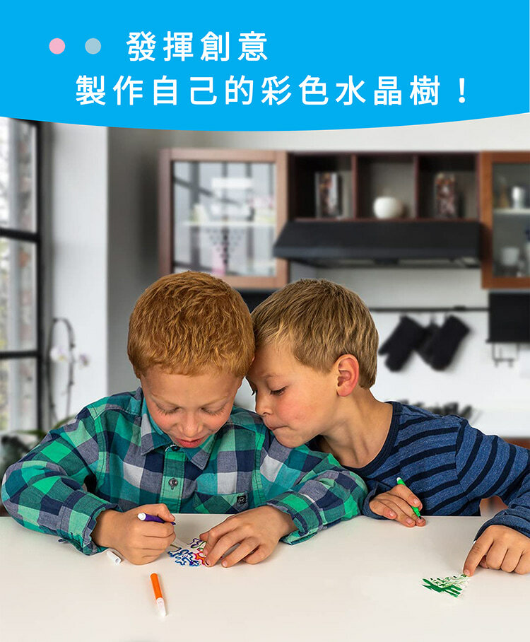 水晶花園實驗套組激發孩子們對科學的興趣,並教孩子手作培育水晶樹的實驗。