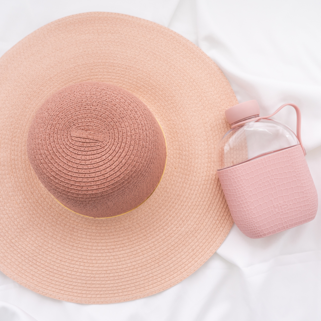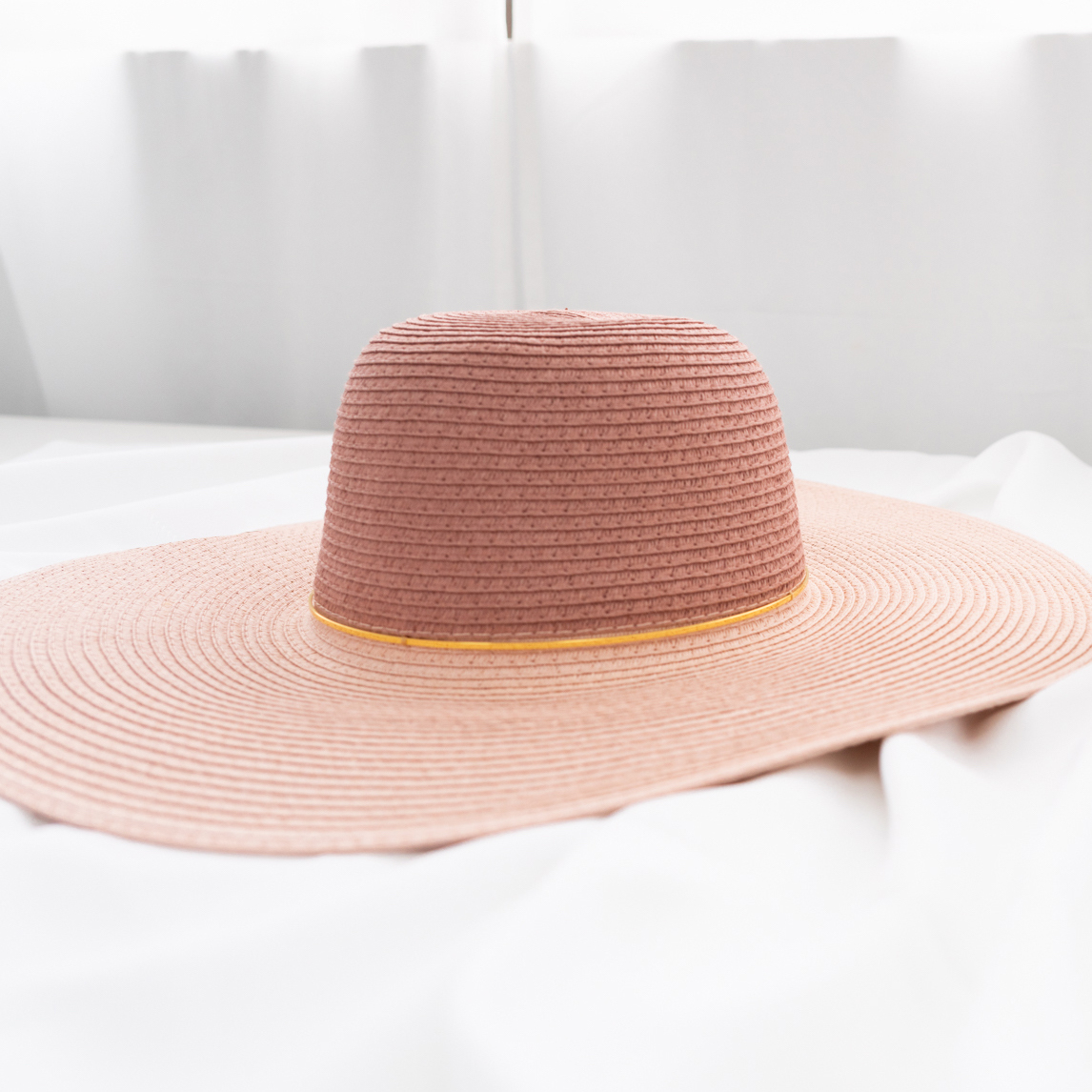 【粉色金圈遮陽草帽Colorblock Paperbraid & Gold Ring Trim】